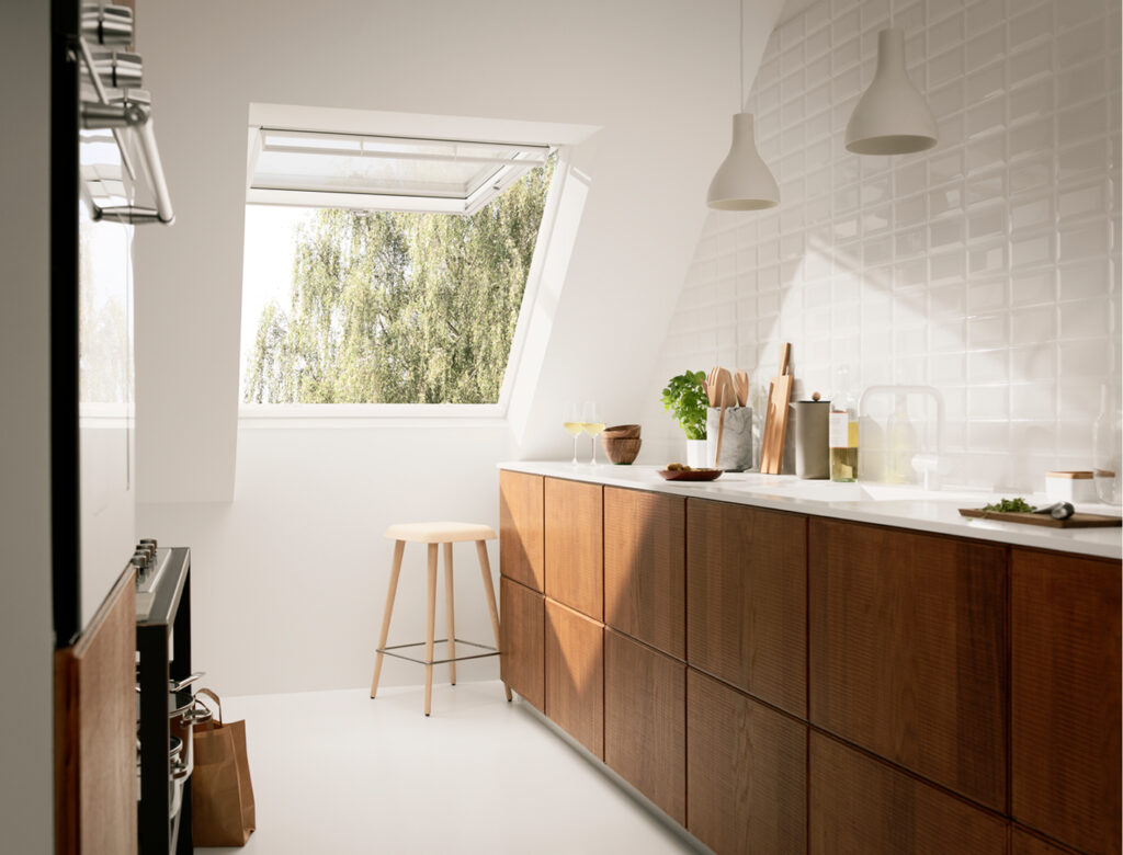 Met de nieuwe generatie VELUX draairamen krijgt u waar voor uw geld. Het glasoppervlak van de nieuwe generatie VELUX dakvensters is tot 18% groter dan dat van de vorige generatie, de standaardbeglazing zorgt voor optimale isolatie en meer zonnewarmte, en de vensters zijn gebruiksvriendelijk en eenvoudig te installeren. Het VELUX dakvenster is verkrijgbaar in wit geschilderd dennenhout, blank gelakt dennenhout of een PVC-versie.